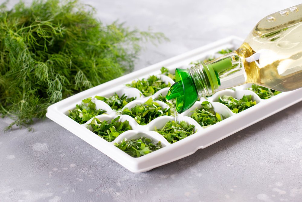 Žolelės porcijomis užšaldomos ledukų formelėse, kad būtų patogu naudoti gaminant. Tai vienas praktiškiausių variantų, kai norite visada turėti po ranka tikslų kiekį.