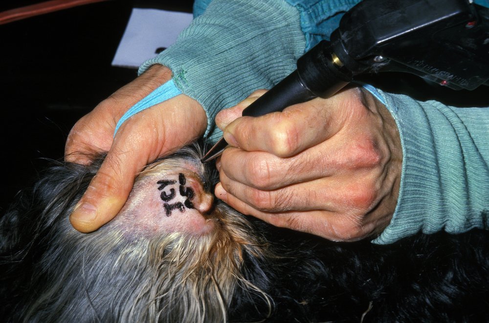 Kaip atrodo sterilizacijos tatuiruotė šuniui?