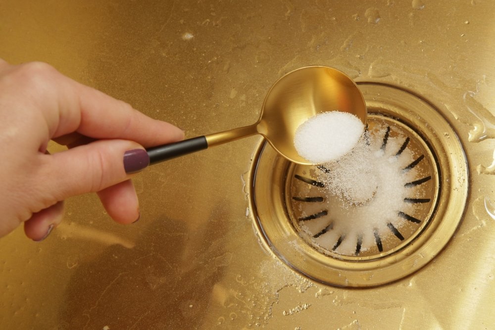 Namų mišinys iš sodos ir acto kartais padeda, kai nutekėjimas tik šiek tiek sulėtėjęs. Cheminė reakcija gali pajudinti ploną riebesnių apnašų ar nešvarumų sluoksnį, tačiau plaukų kamščių dažniausiai neištirpdo. Šį metodą verta laikyti „švelniu“ bandymu prieš pereinant prie sifono ardymo.