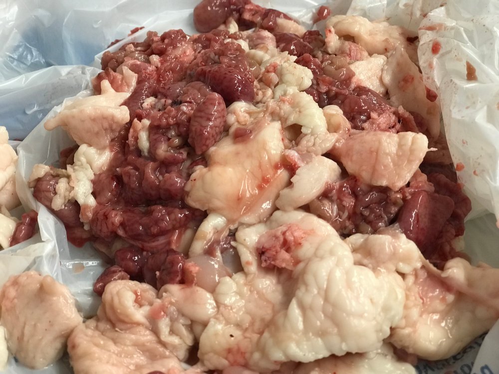 Nevalgomas skrandžio maišelis (jis yra arčiau galvos, netoli akių) ir pats kevalas. Taip pat paprastai nevalgomi žiaunų audiniai.